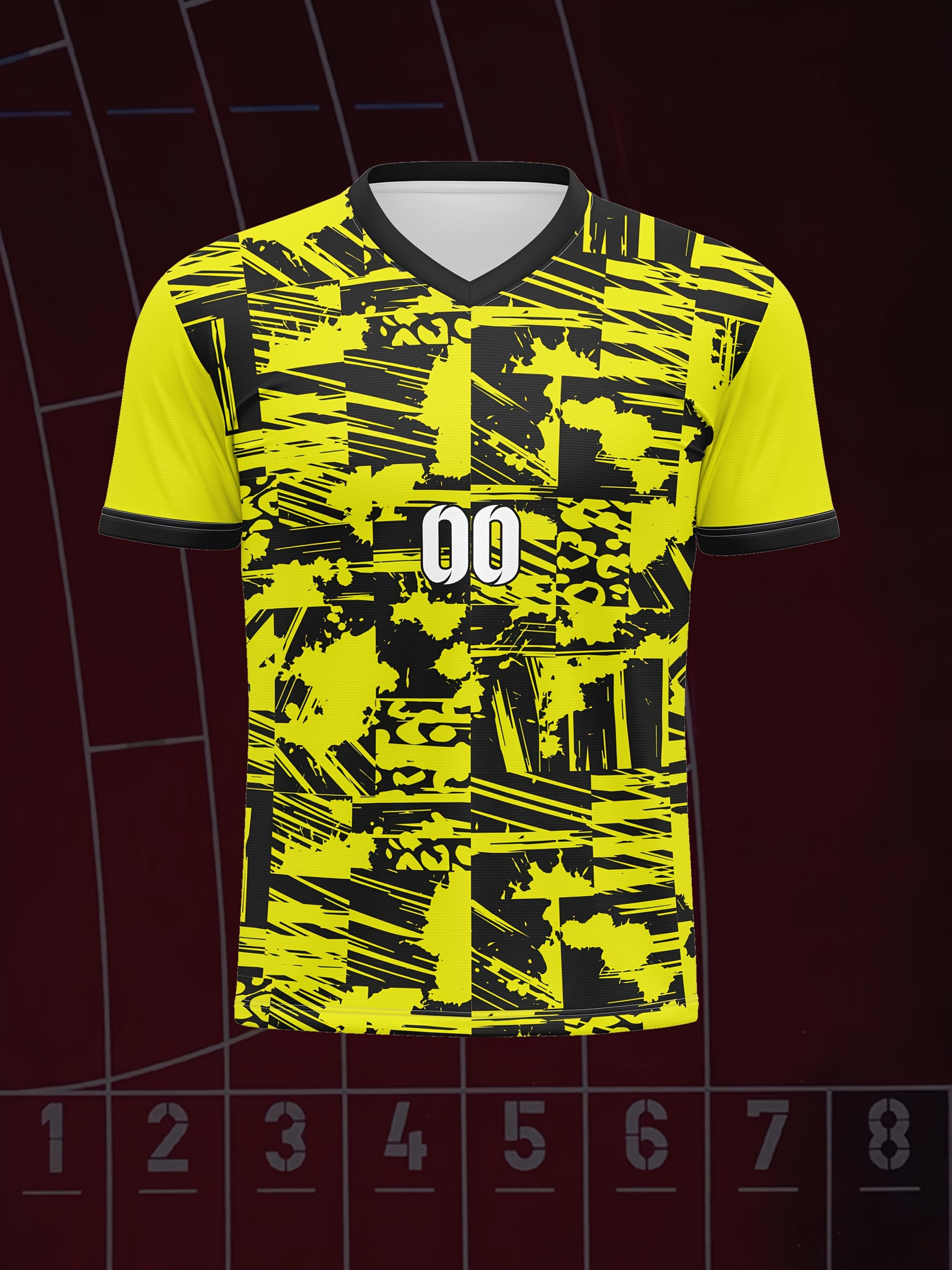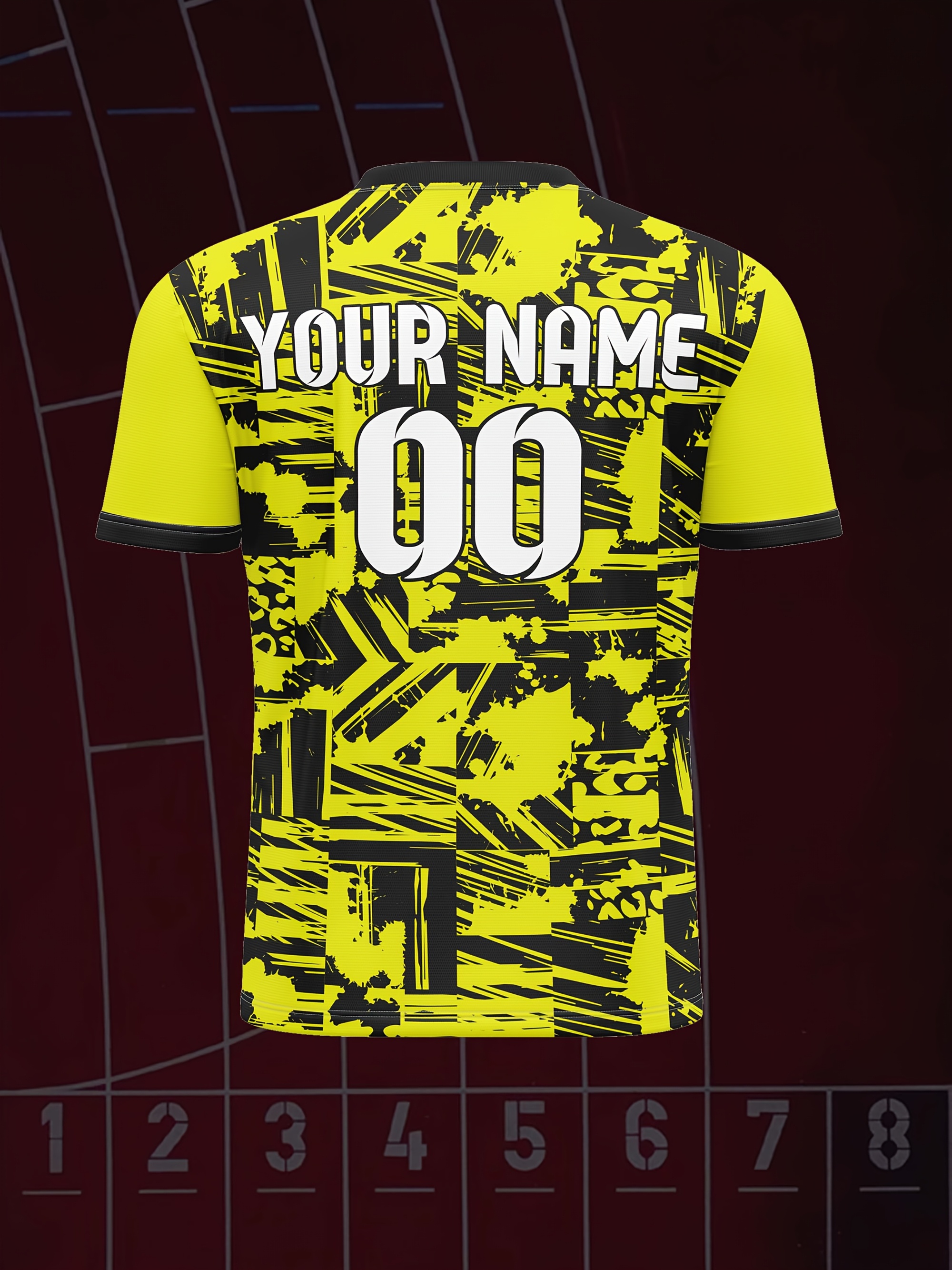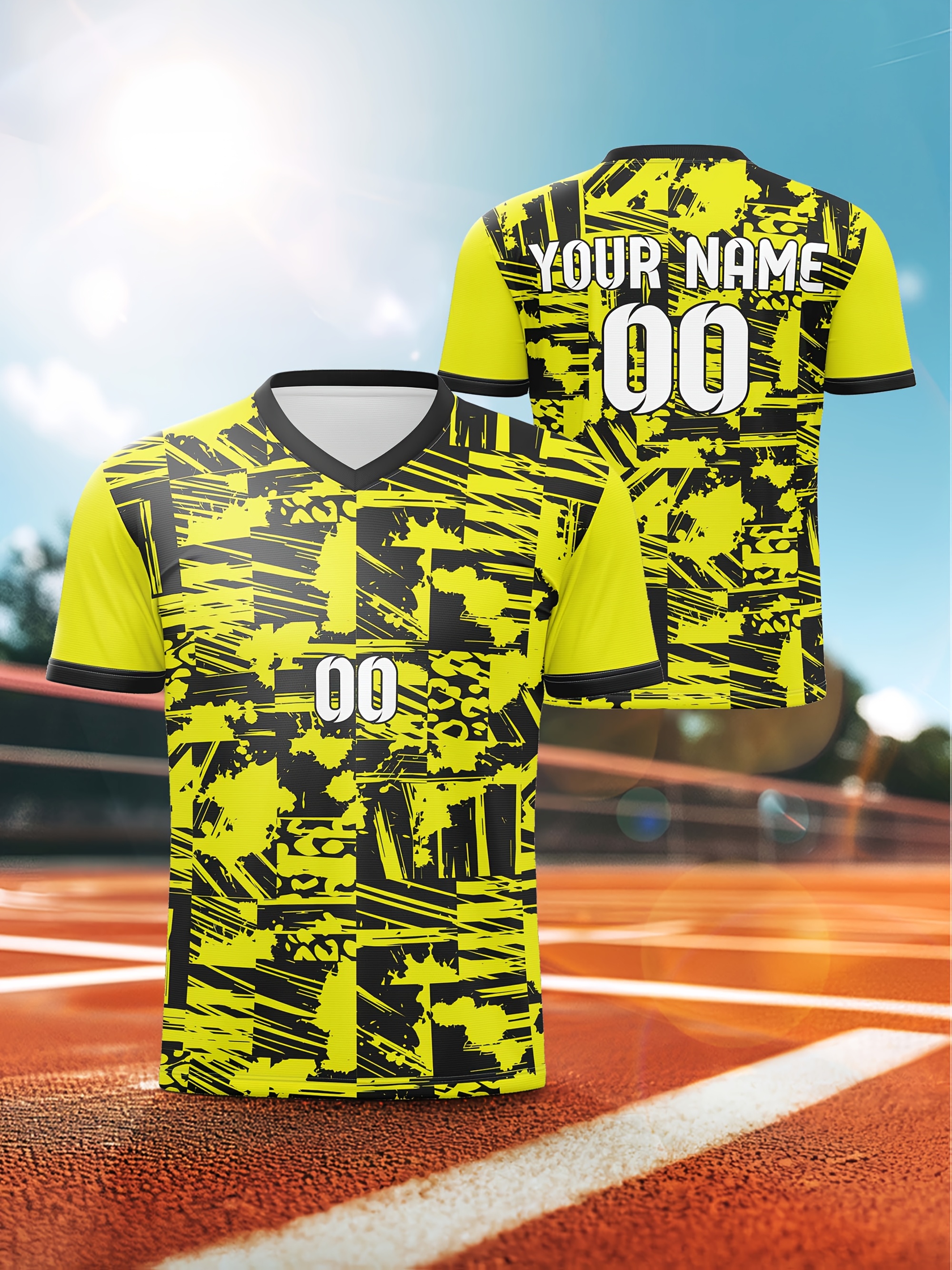 1pc Customizable Soccer Jersey for Kids - V-Neck Football Shirt with Personalized Name & Number, 100% Polyester Knit Fabric, All-Over Print, Medium Stretch, Regular Fit, for Boys & Girls, Sports & Casual Wear, Spring/Summer/Fall