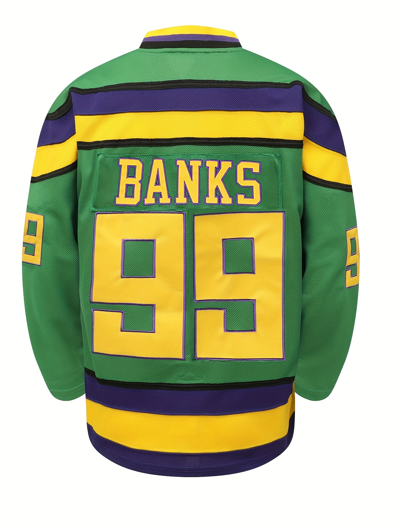 1pc Men'S Ice Hockey Jersey - Green #99 Banks Embroidered Long Sleeve Knit Polyester Sports Top with V-Neck for Casual, Outdoor, Hiking, Workout - Breathable, Slight Stretch, Four Seasons