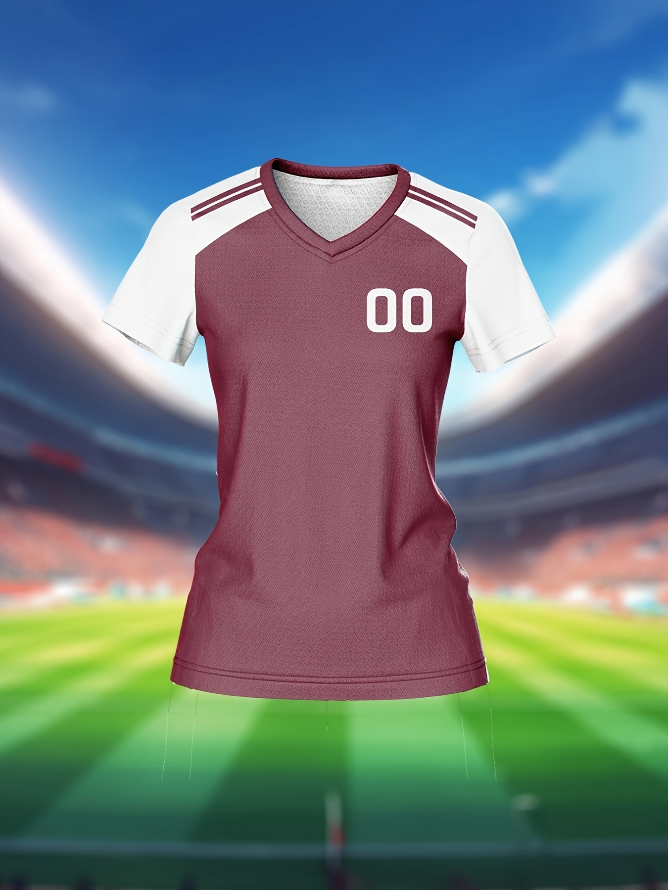 [Customizable Soccer Jersey] Maroon & White Customizable Women's V-Neck Soccer Jersey | Quick-Dry Fabric, Breathable, Training Apparel with Name & Number