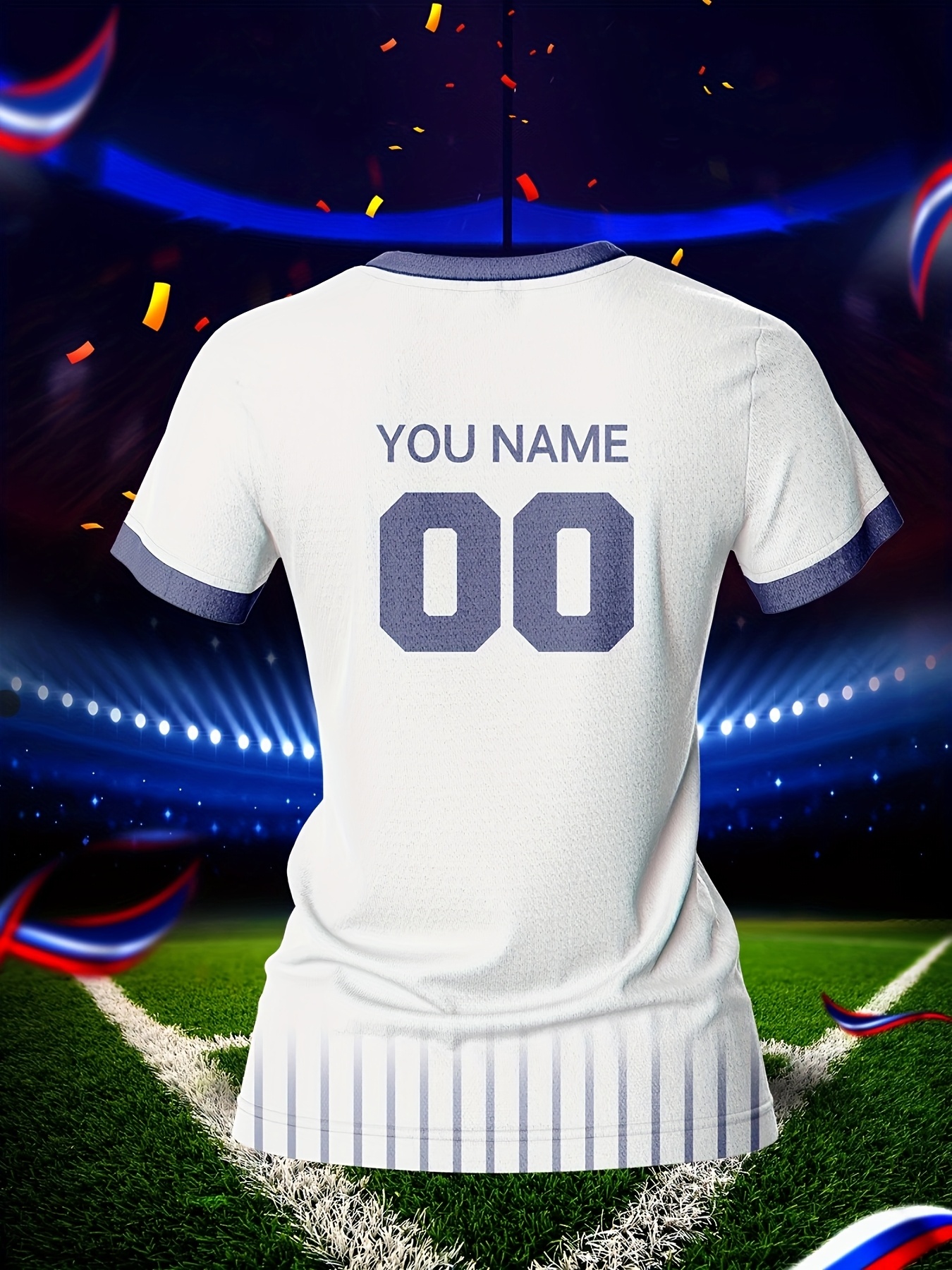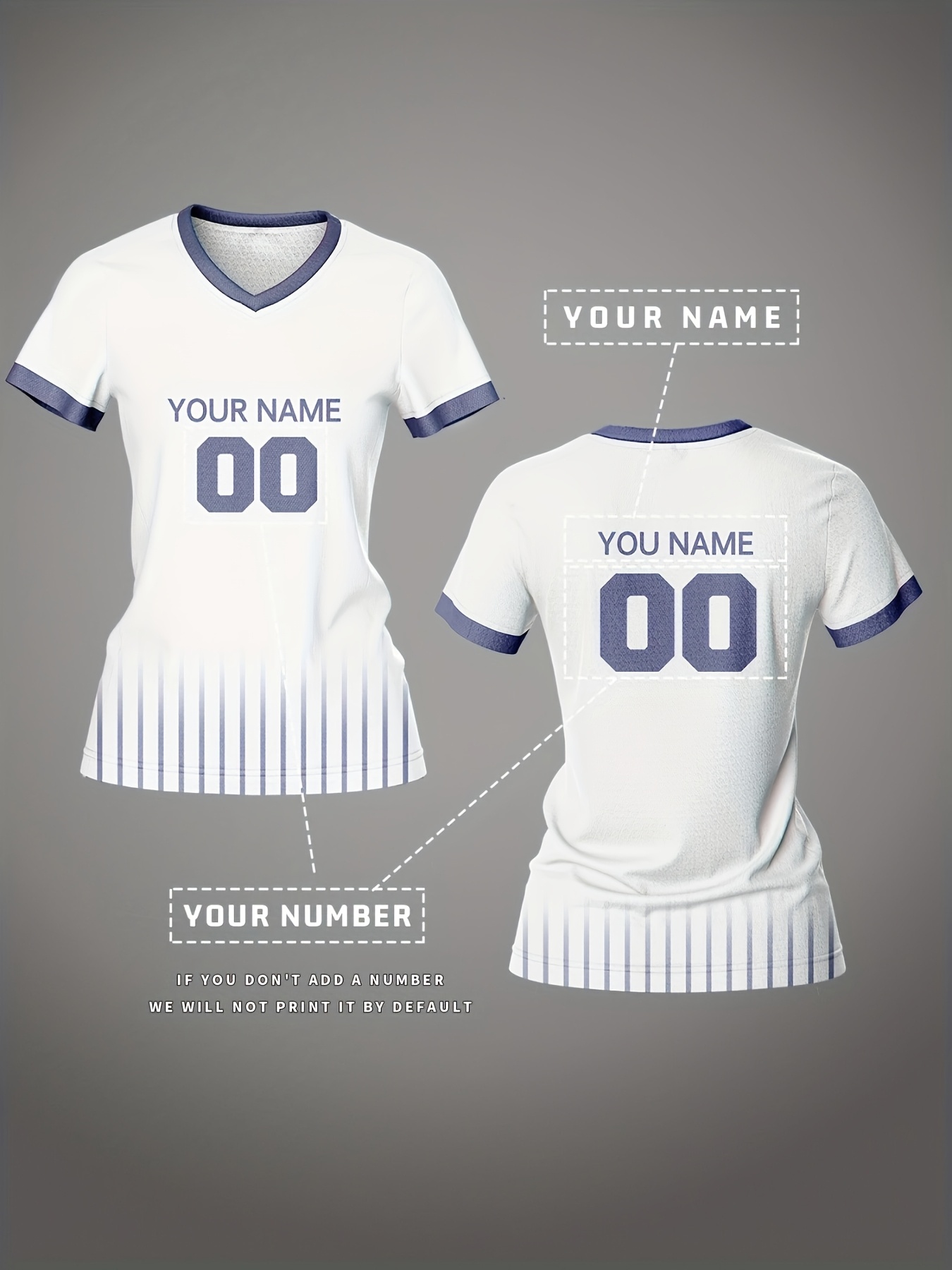 Customizable Women's V-Neck Soccer Jersey - Personalized Name & Number, Breathable Polyester, Quick-Dry Sports Top for Team Training & Casual Wear, Sports Training Top | Customizable Sports Apparel | Durable Sports Clothing