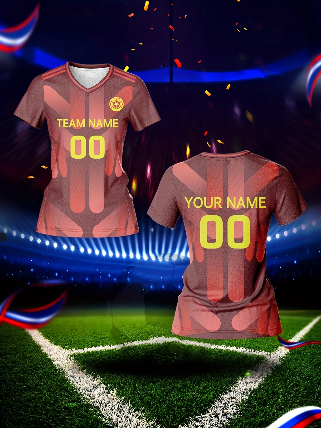Customized Women's V-Neck Football Jersey - Personalized Name & Number, Breathable Quick-Dry Fabric, Team Training & Casual Wear, All-Over Print Design, Regular Fit for Spring/Summer/Fall, Custom Football Jersey, Quickdrying Fabric