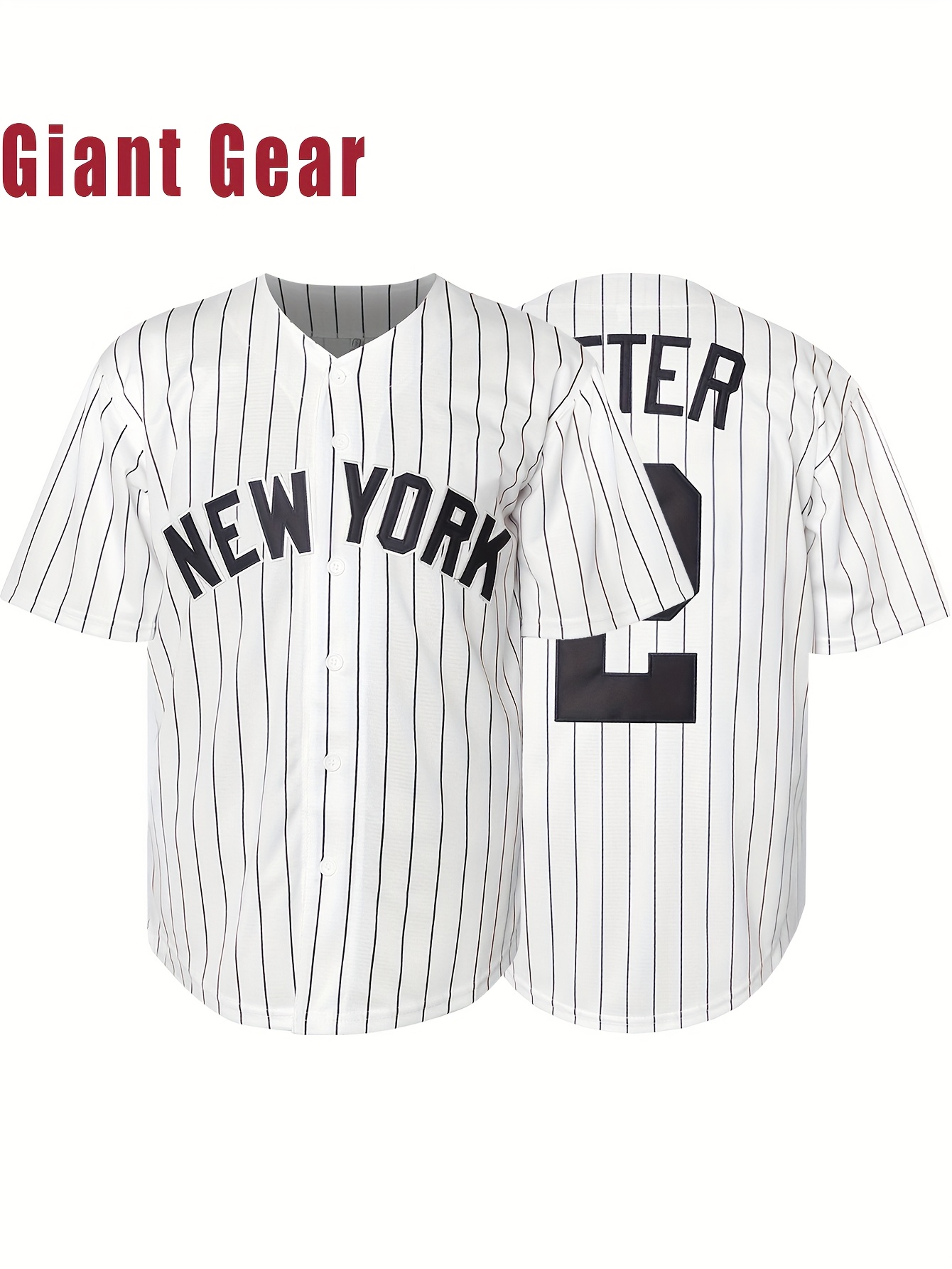 Men'S # 2 White Embroidered Striped Baseball Jacket Sports Style V-neck Sports Shirt Suitable For Casual Wear