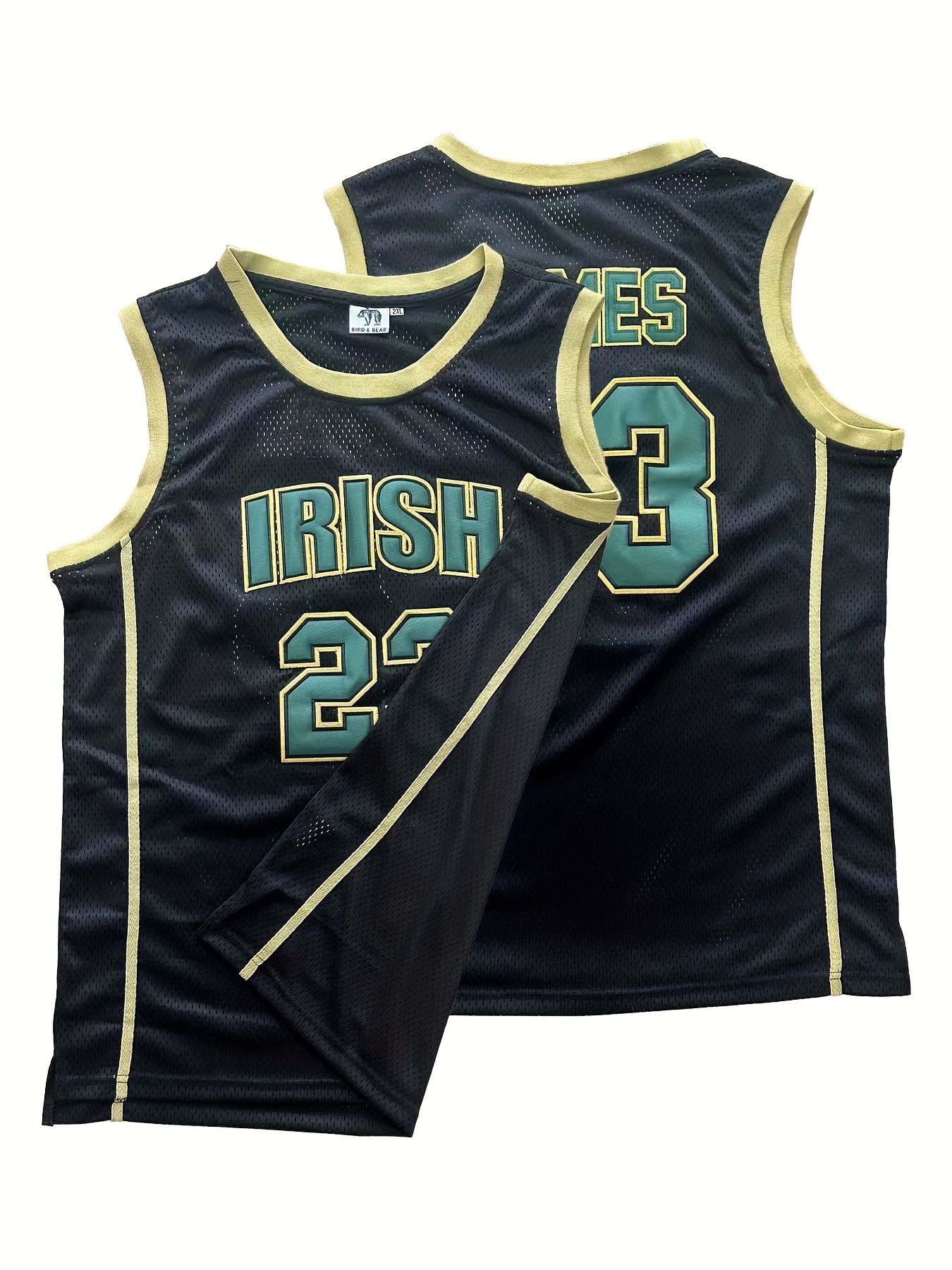Men'S #23 Basketball Jersey Vintage Embroidered Crewneck Breathable Race Training Uniform Jersey Sleeveless Top Black Green S-XXXL