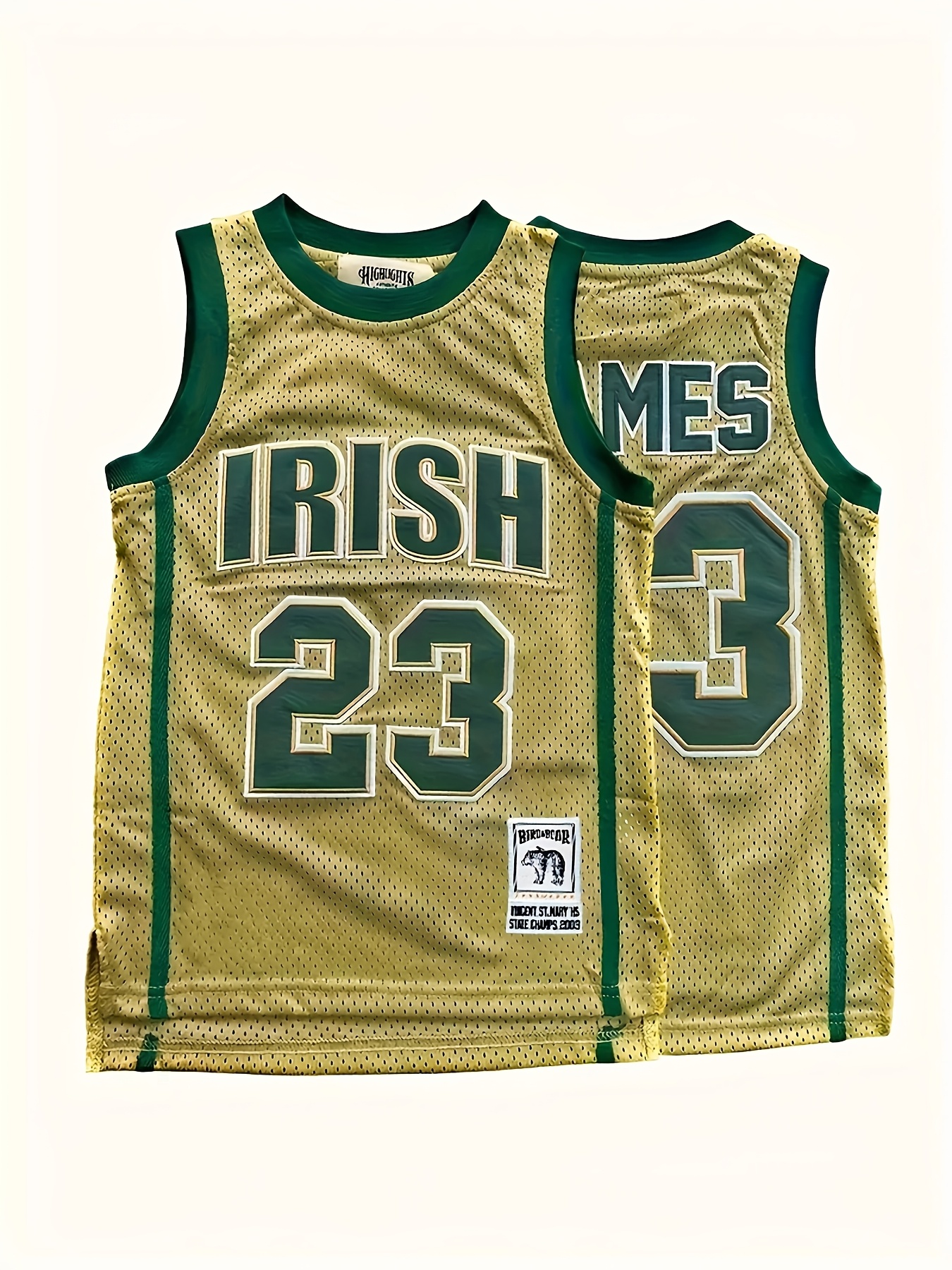 Men's #23 Basketball Jersey Vintage Embroidered Crewneck Breathable Race Training Uniform Jersey Sleeveless Top Green S-XXXL