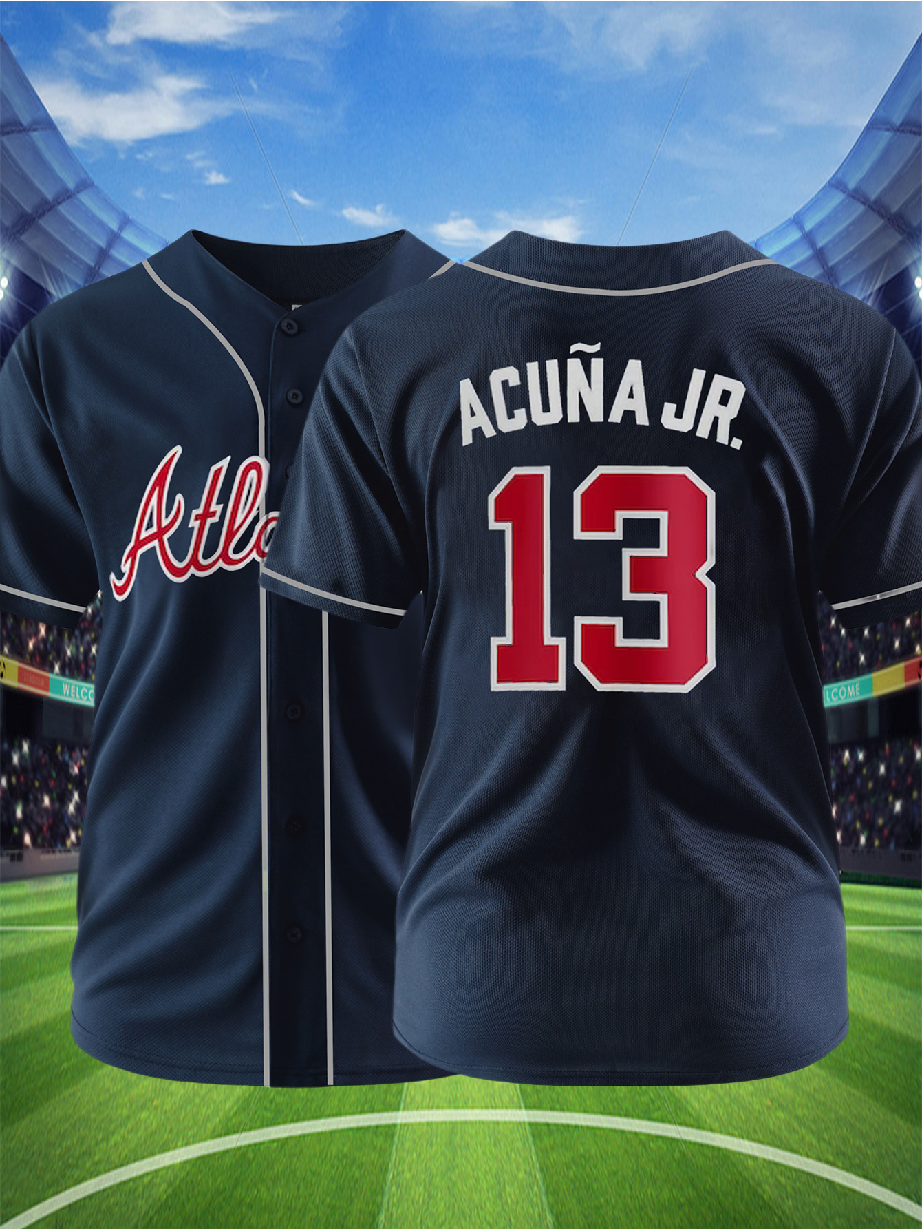 Men's Dark Blue #13 Baseball Jersey - Breathable Button-Up V-Neck Shirt with Letter Design, Loose Fit for Training, Games & Casual Wear | All-Season Sportswear for Men & Teens