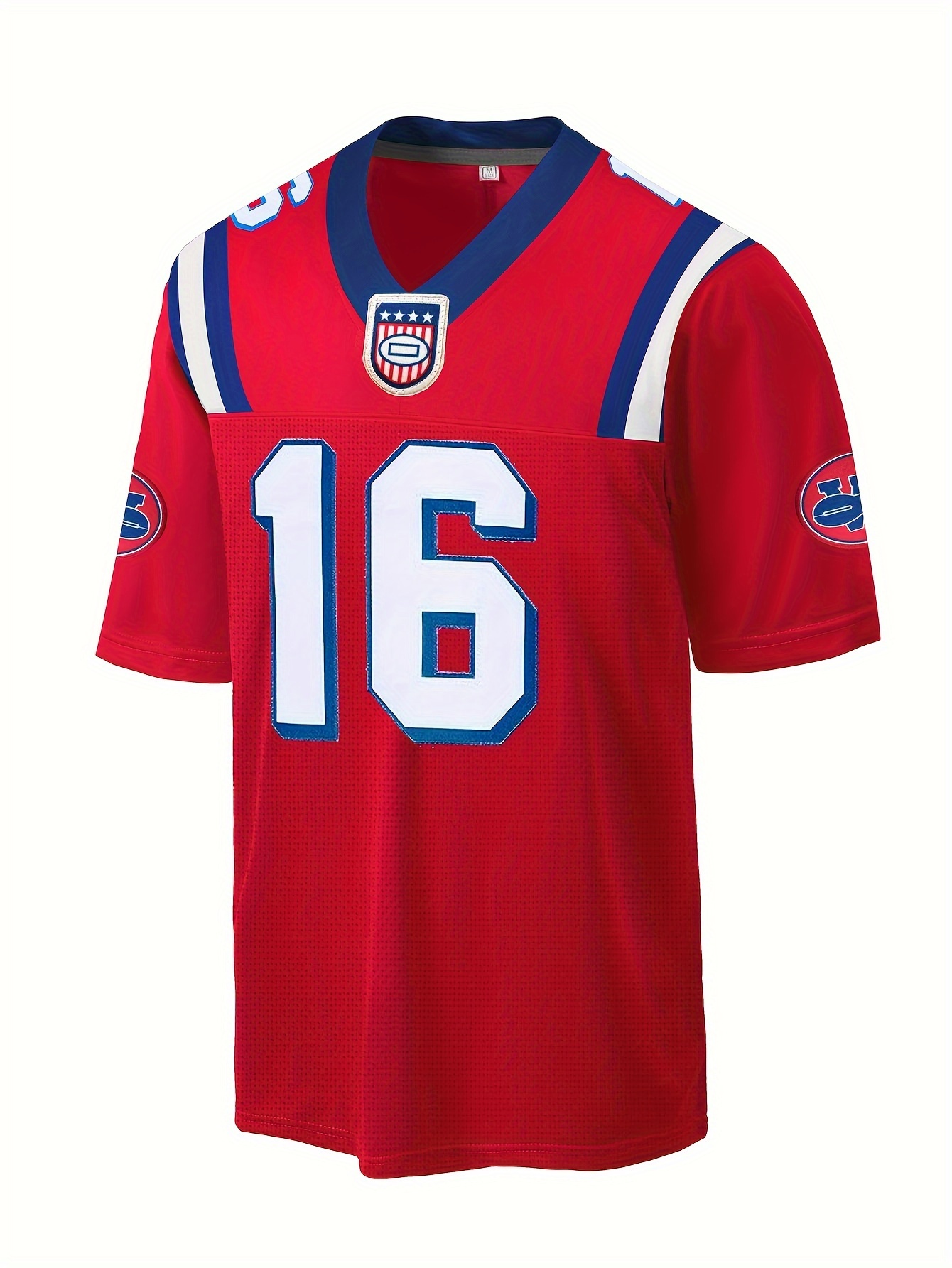 Men's Red # 16 American Football Suit Loose Embroidered Sports, Fashion, Casual, Street Breathable Football Suit