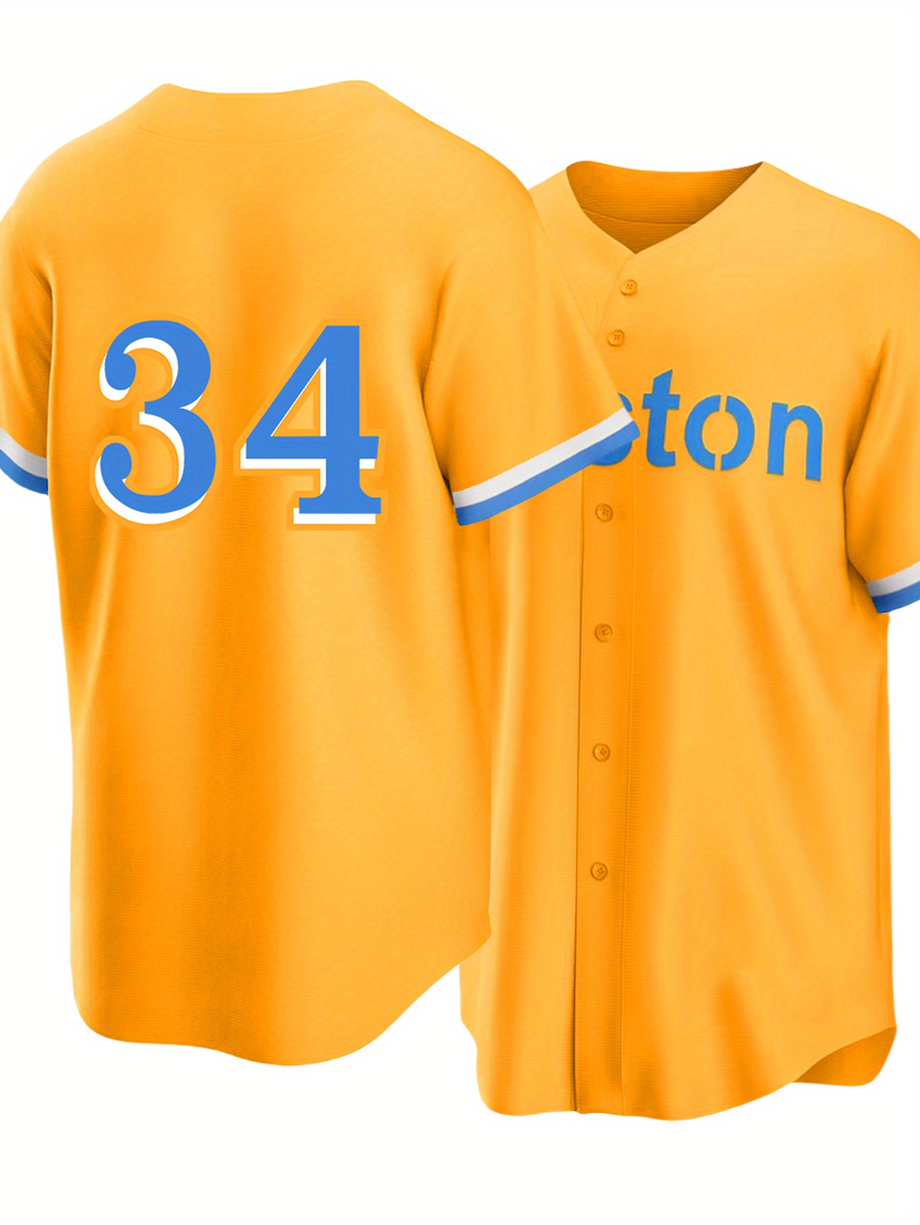 Men's Yellow #4 Baseball Jersey - Loose Fit V-Neck Streetwear with Embroidered Lettering, Breathable Short Sleeve Sports Shirt for Casual, Outdoor & Seasonal Celebrations (Machine Washable), Outdoor Activewear | Relaxed Fit Top | Comfortable Wear