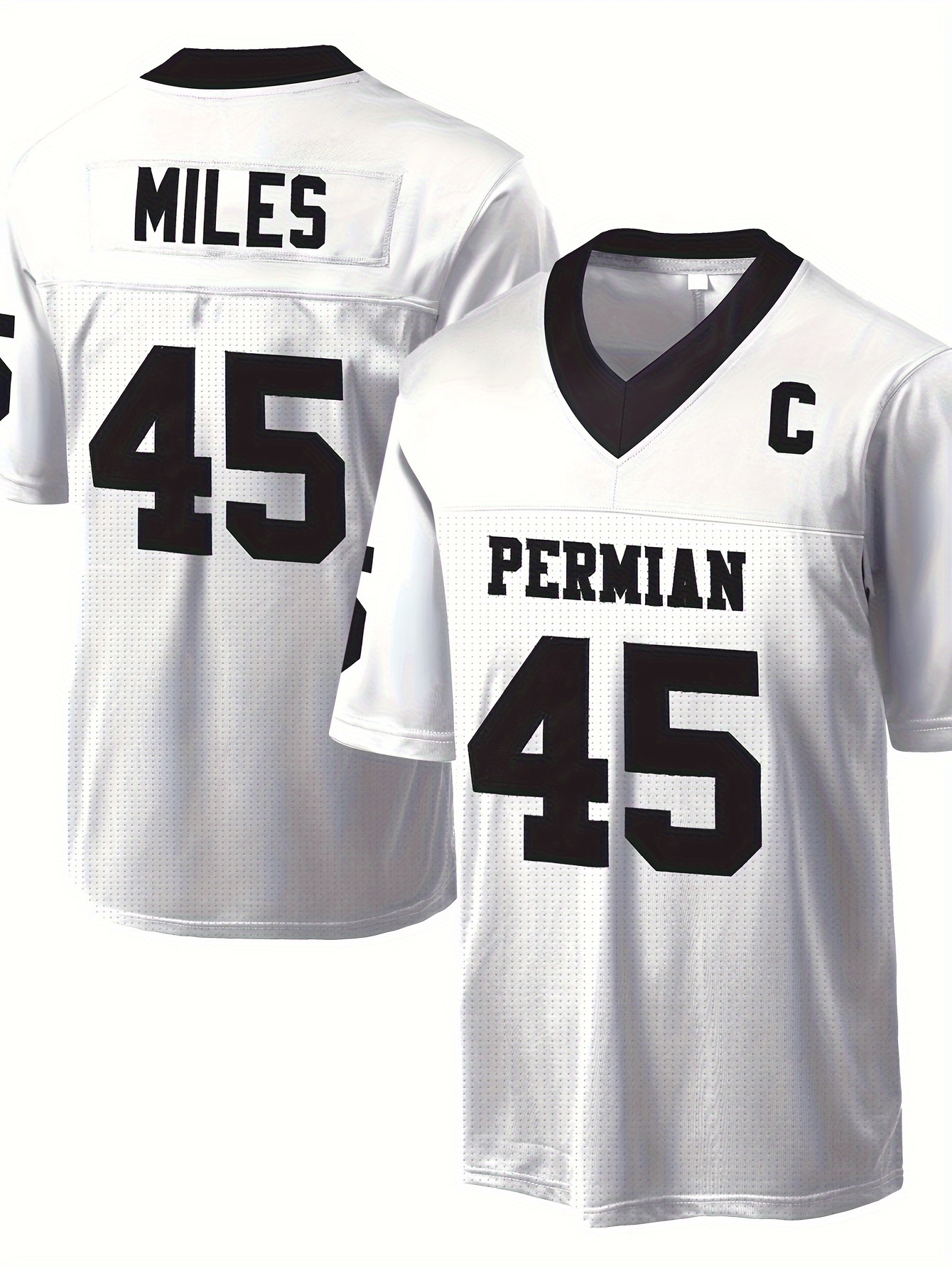 [Party Ready] Men's #45 "PERMIAN" White American Football Jersey - Loose Fit, Breathable Mesh, V-Neck with Embroidered Details, Casual & Sporty Style for Parties, Training & Casual Attire