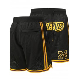[Embroidered Basketball Shorts] High Quality Embroidered Men's Black Basketball Shorts - Breathable Sports Zipper Shorts With Pockets - Size 8-24