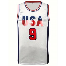 [White #9 Breathable Basketball Shirt] Men's White # 9 Basketball Shirt Casual Fashion Breathable Sports High-quality Embroidered Street Basketball Pullover