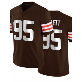 Men's Brown #95 American Football Jersey - Breathable Loose Fit V-Neck with Embroidered Letter Design, All-Season Casual Streetwear for Sports & Outdoor Activities, Football Gear, Durable Sportswear