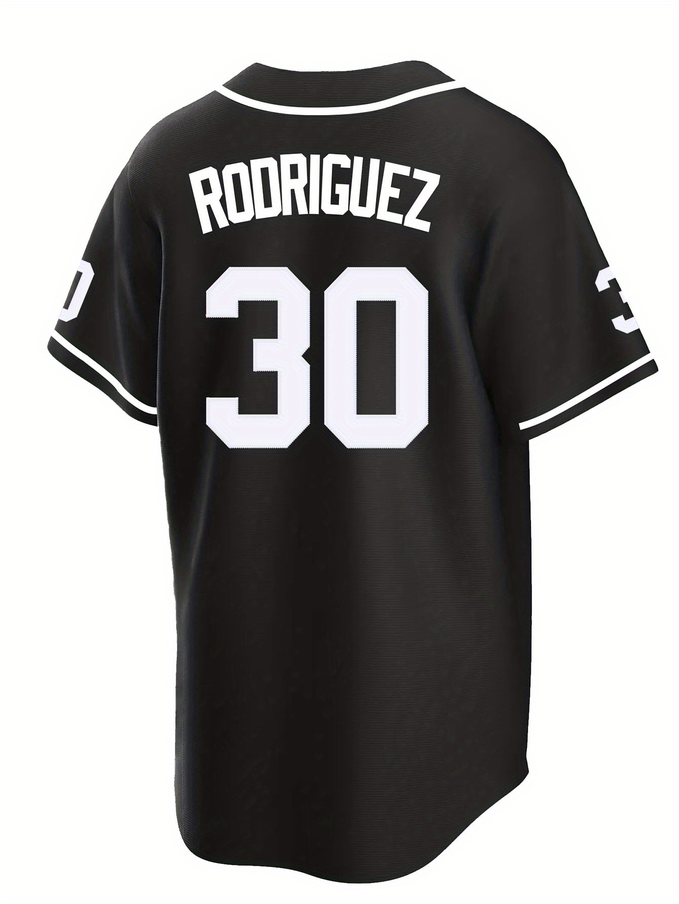 Men'S Black # 30 Baseball Shirt, Classic Letter Embroidery Design, Button style Short Sleeve Breathable Shirt, Training and Competition Category: Men'S Baseball Shirt