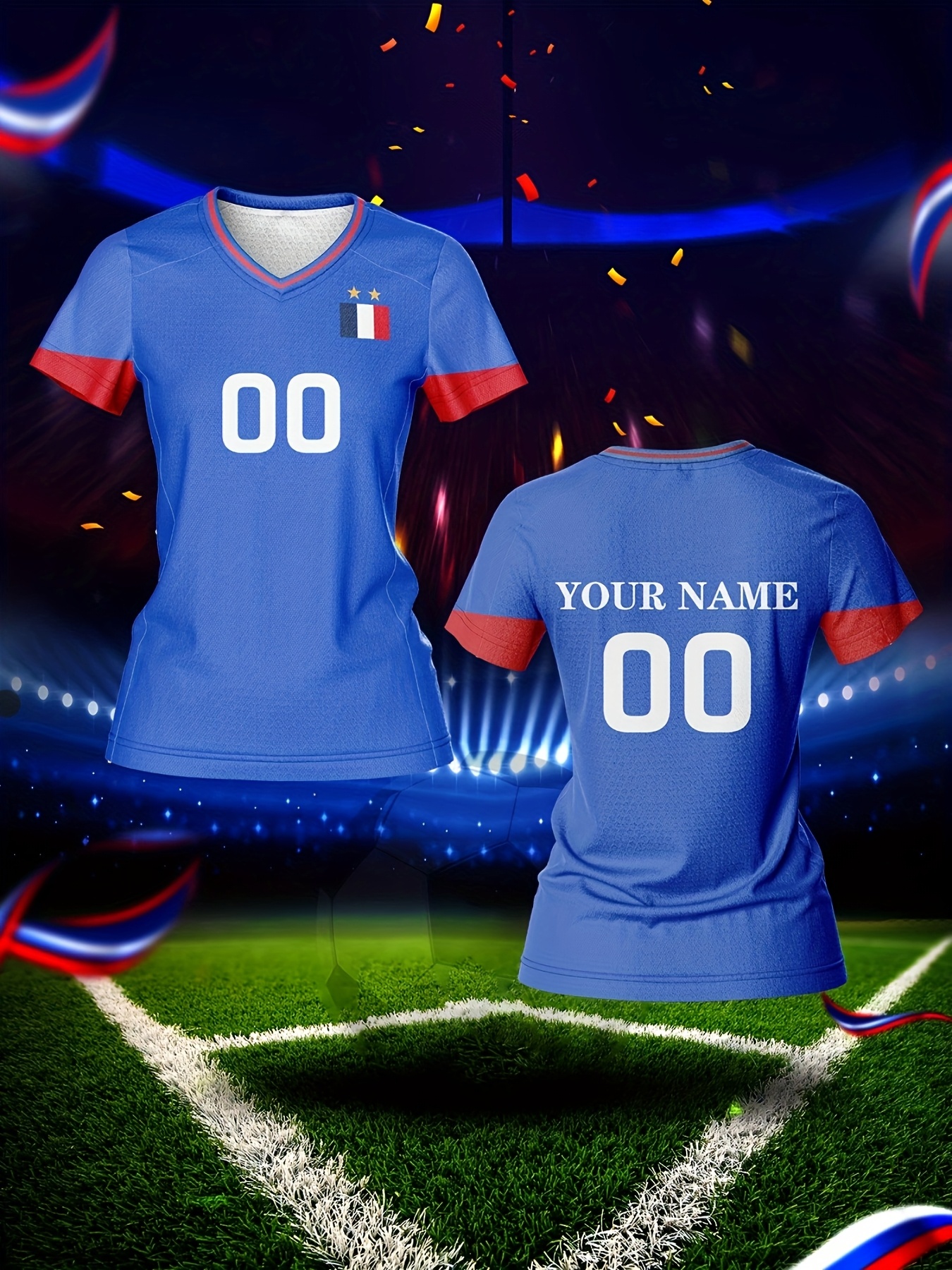 Custom Name and Number Women'S V-Neck Football Jersey Team Training Sportswear Comfortable Breathable Moisture-Wicking Casual Wear