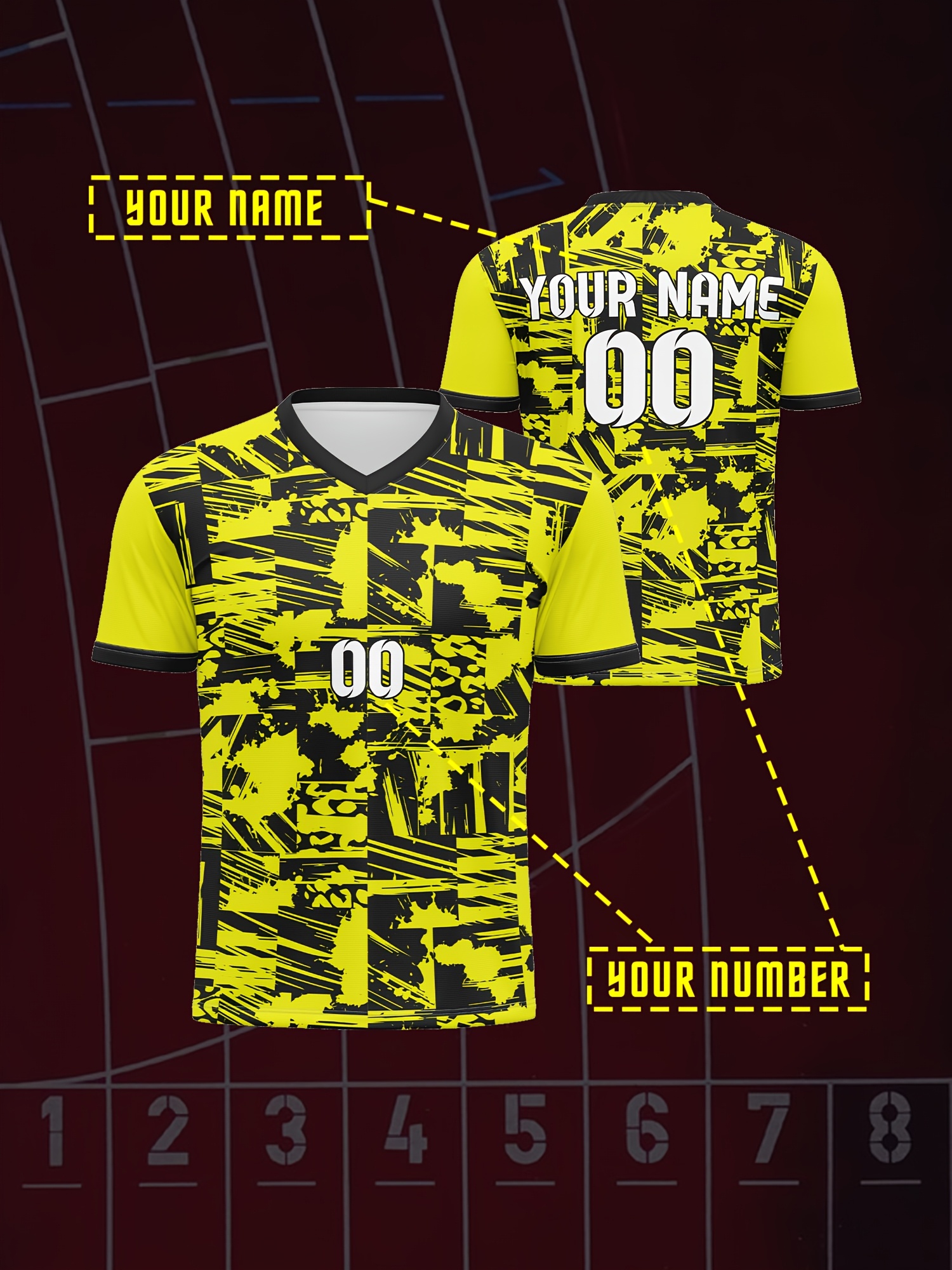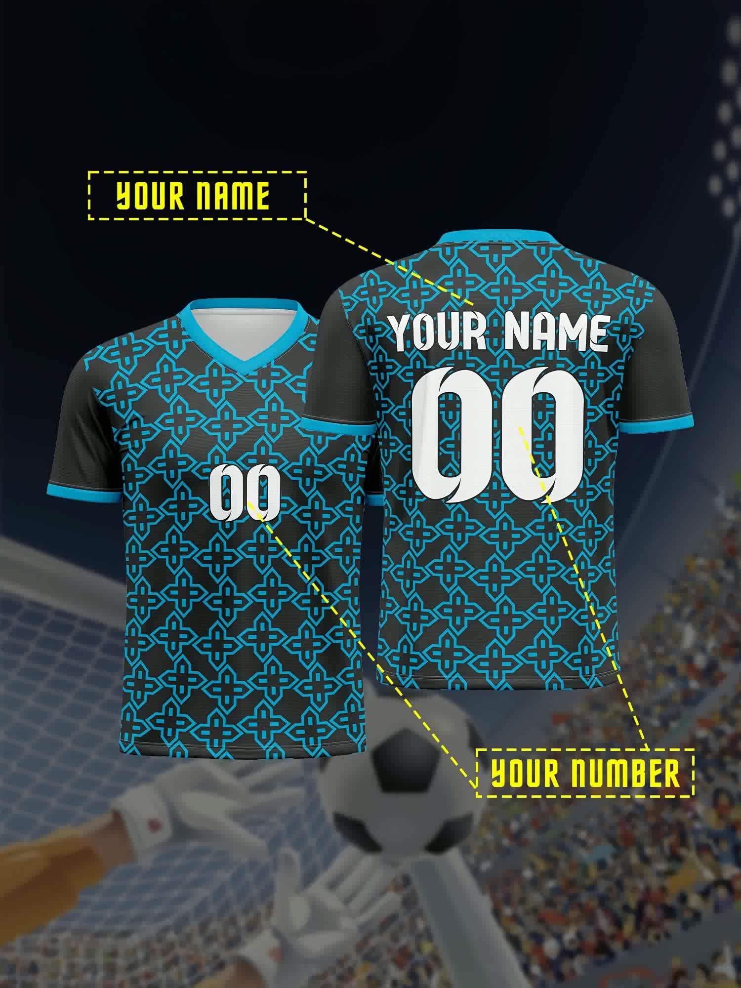 1pc Customizable Soccer Jersey for Kids - V-Neck Football Shirt with Personalized Name & Number, 100% Polyester Knit Fabric, All-Over Print, Medium Stretch, Regular Fit, for Boys & Girls, Sports & Casual Wear, Spring/Summer/Fall