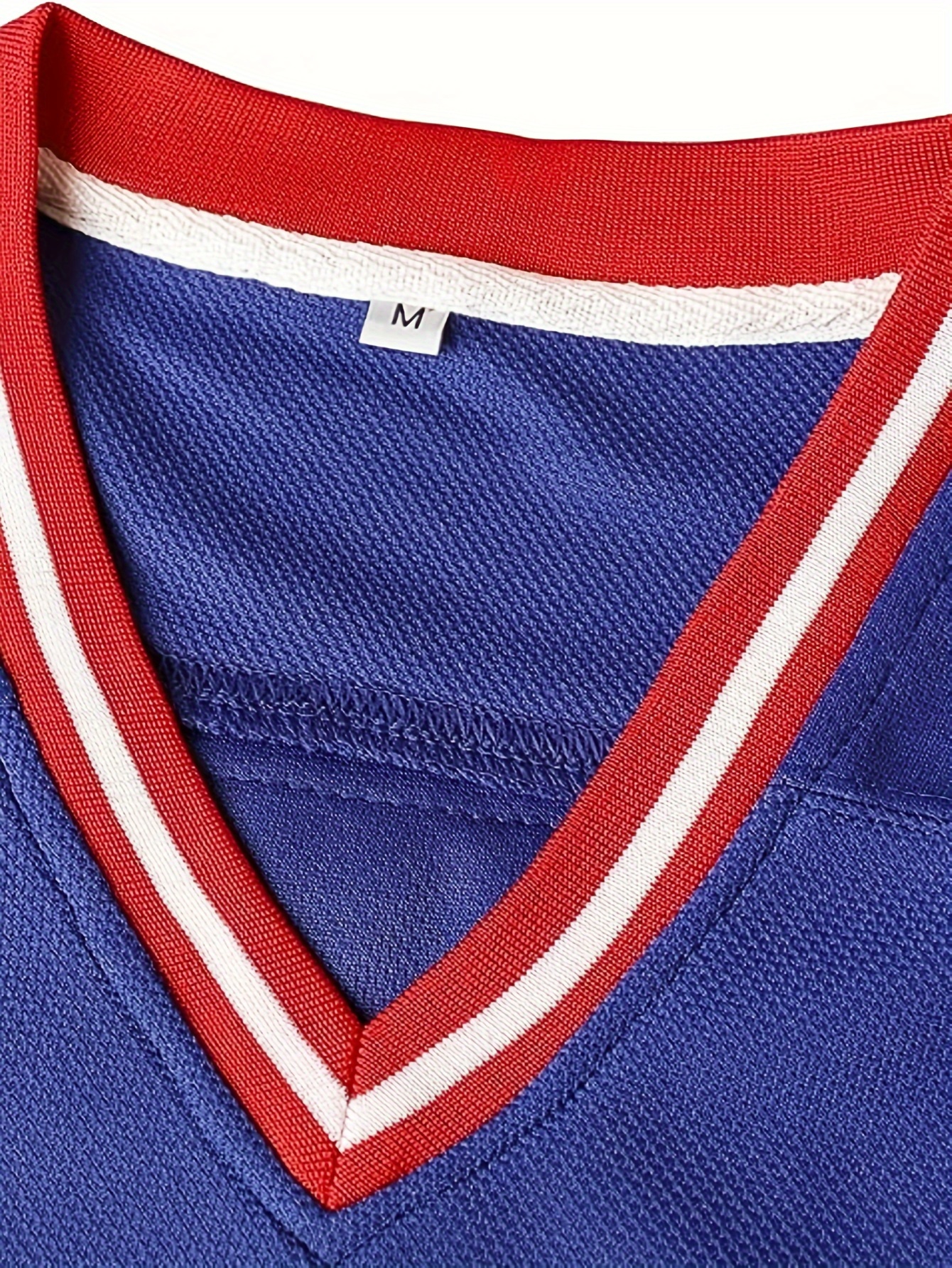 1pc SheLucki Men'S Ice Hockey Jersey Sweatshirt - Embroidered V-Neck Long Sleeve Top, Polyester Sports Shirt for Casual, Outdoor, Running & Exercise, Loose Fit for All Seasons