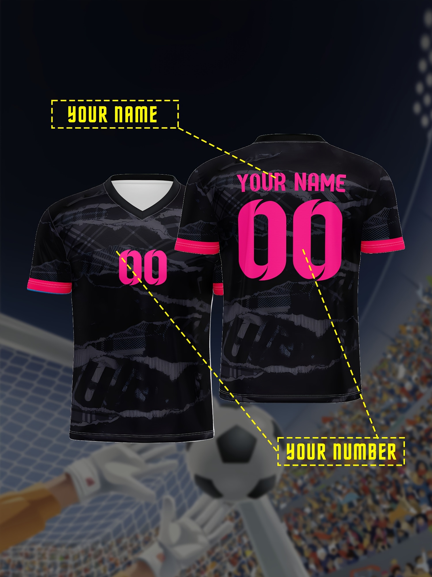 [Customizable Soccer Jersey] Customizable Comfortable Fit V-Neck Youth Soccer Jersey - Personalized Name & Number | Medium Stretch Fabric, All-Season Appeal, Sports Jersey