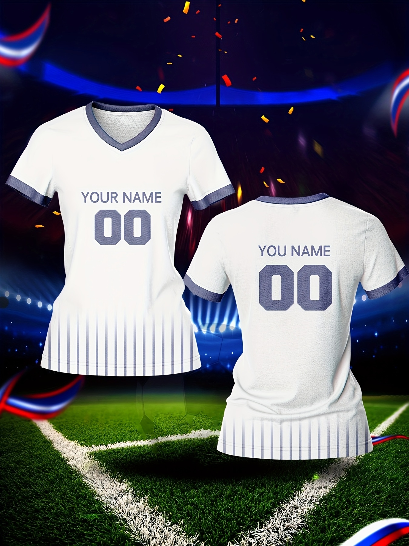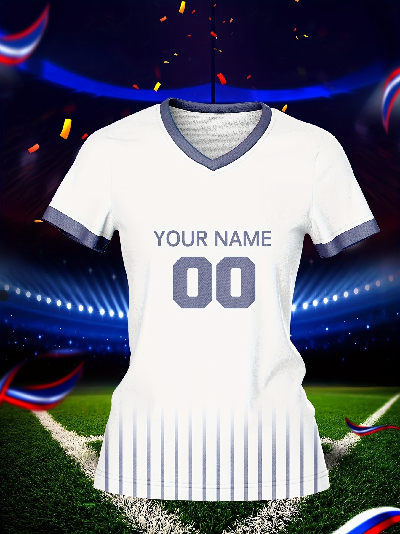 Customizable Women's V-Neck Soccer Jersey - Personalized Name & Number, Breathable Polyester, Quick-Dry Sports Top for Team Training & Casual Wear, Sports Training Top | Customizable Sports Apparel | Durable Sports Clothing