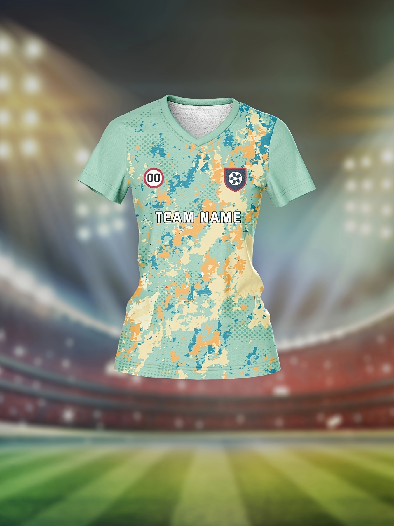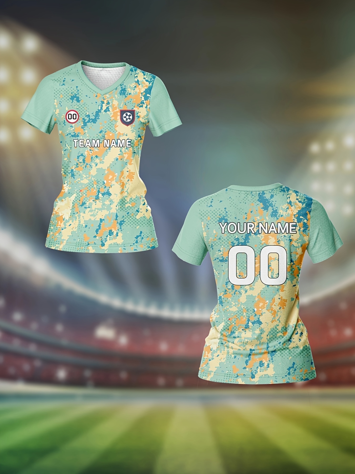 Customizable Women'S V-Neck Soccer Jersey - Personalized Team Name & Number, Lightweight & Breathable Polyester, Ideal for Training & Casual Wear, Spring/Summer/Fall, Casual Wear|Vneck Jersey|Comfortable Fit