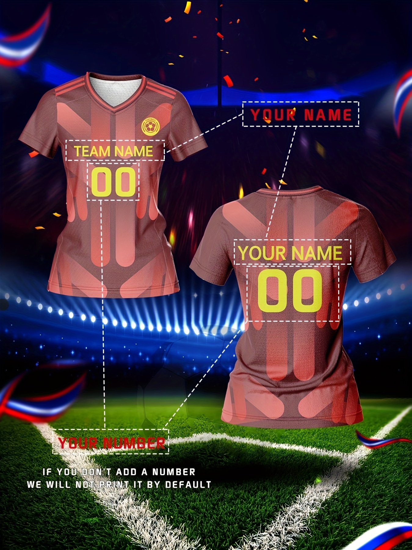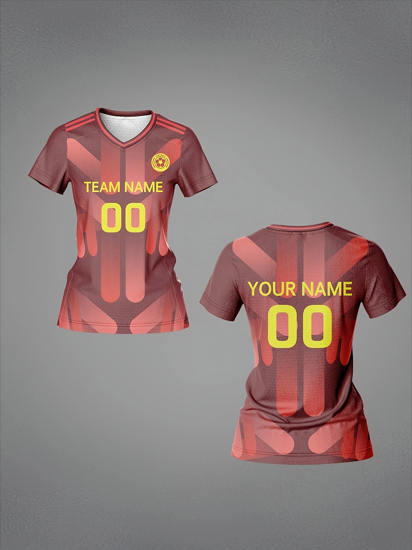 Customized Women's V-Neck Football Jersey - Personalized Name & Number, Breathable Quick-Dry Fabric, Team Training & Casual Wear, All-Over Print Design, Regular Fit for Spring/Summer/Fall, Custom Football Jersey, Quickdrying Fabric