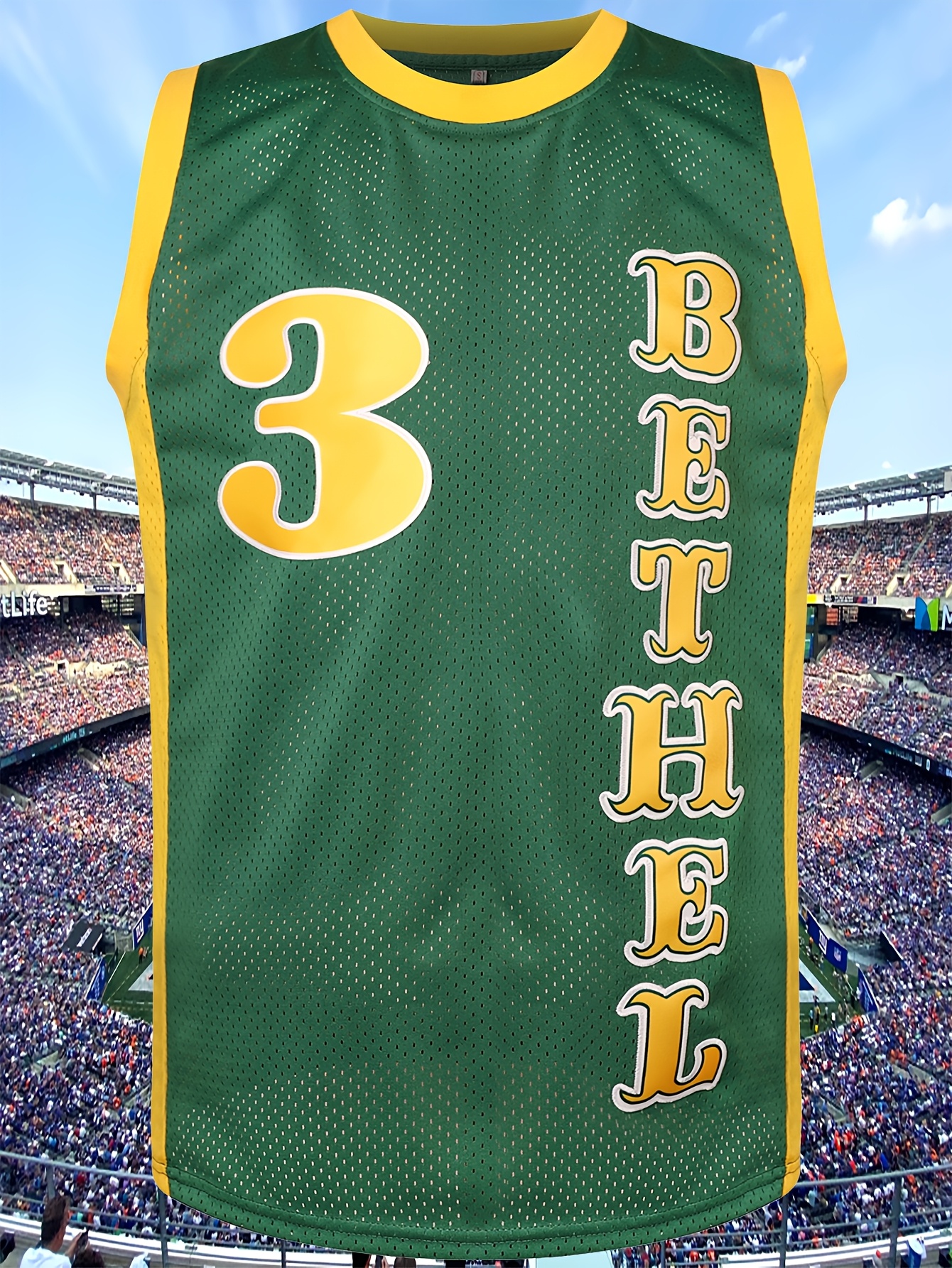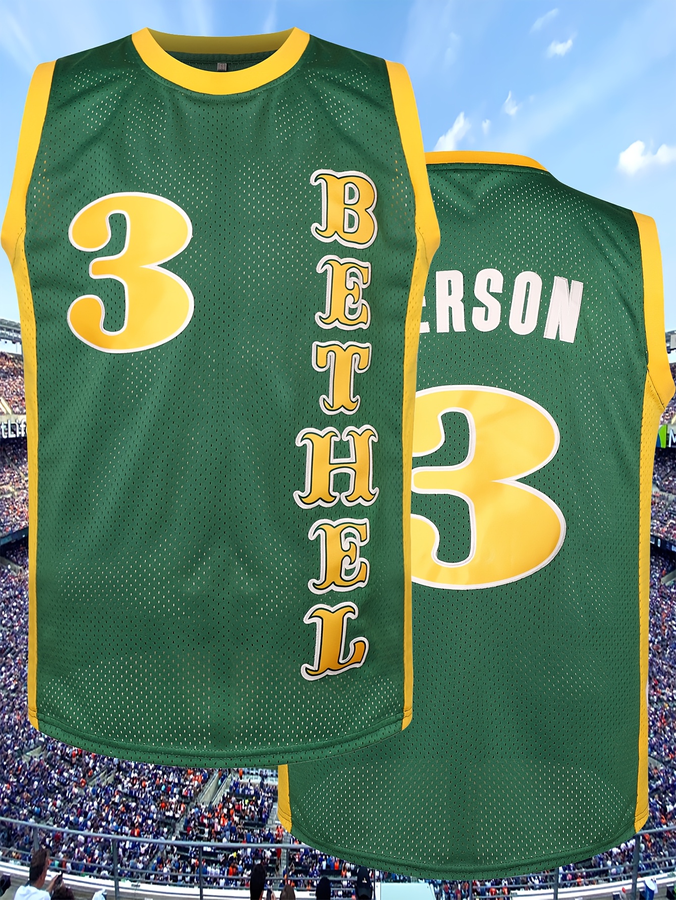 Men's #3 Green Basketball Jersey - V-Neck, "Bethelson" & "California 33" Design, Breathable Polyester Mesh for Training, Competition & Team Sports, Sizes S-XXXL