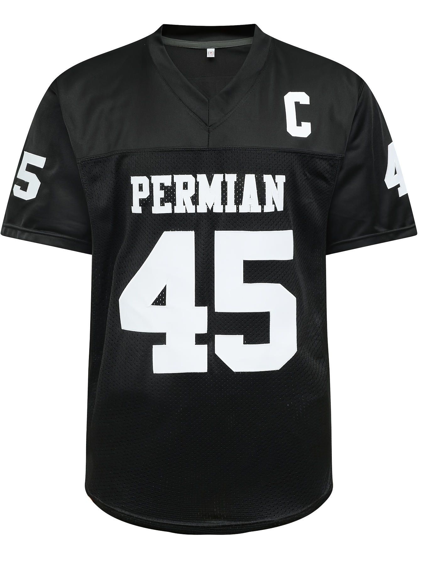 [Comfortable] Men's #45 "Permian" Black American Football Jersey - Breathable & Embroidered, V-Neck, Short Sleeve, Loose Fit for Casual, Streetwear & Sports Activities