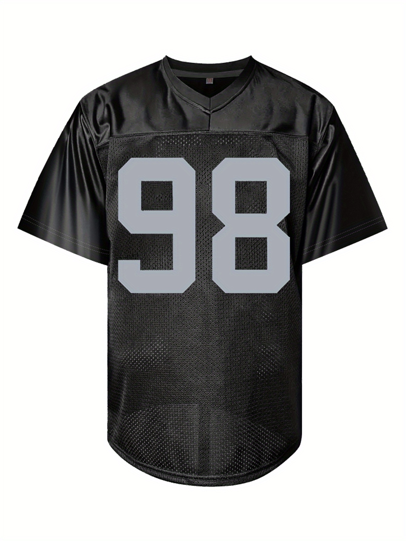 Men'S Black # 98 American Football Jersey Suit Loose Embroidered Sports, Fashionable and Casual, Street Breathable Football Suit