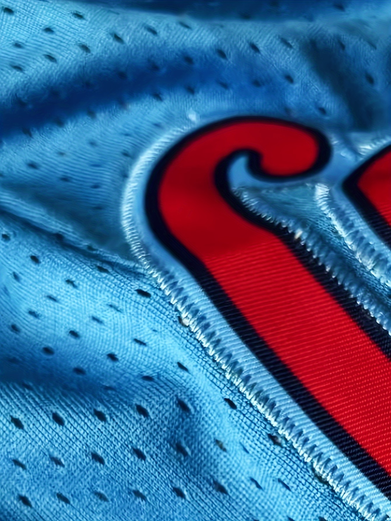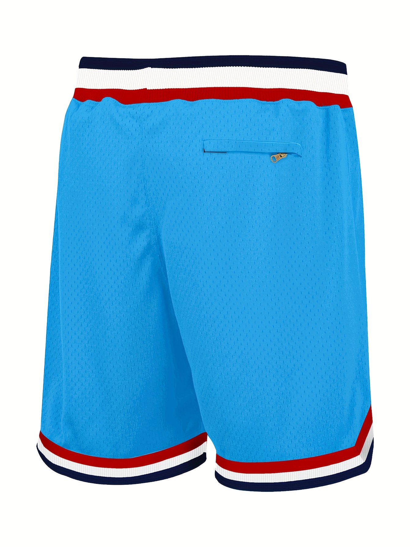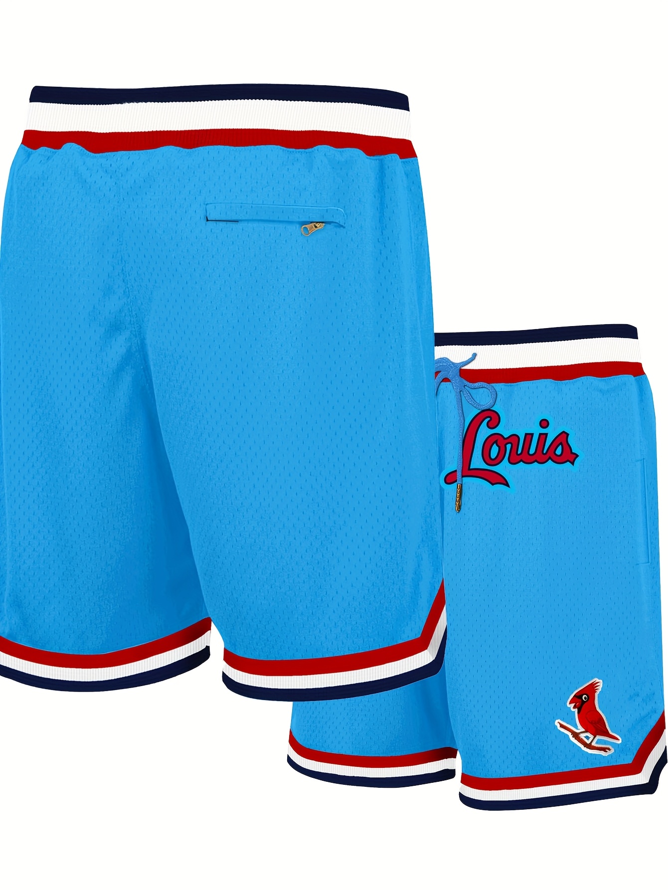 Moon Blue # Bird Animal Cartoon Embroidery Pattern, Baseball Shorts With Pocket, Casual Fashion, Breathable, Sports Zipper, High Quality Embroidered Shorts