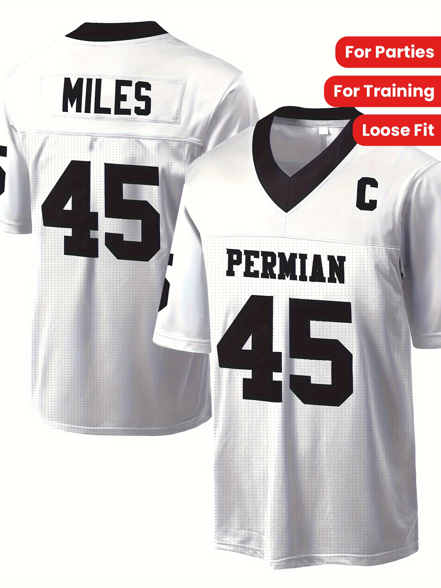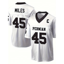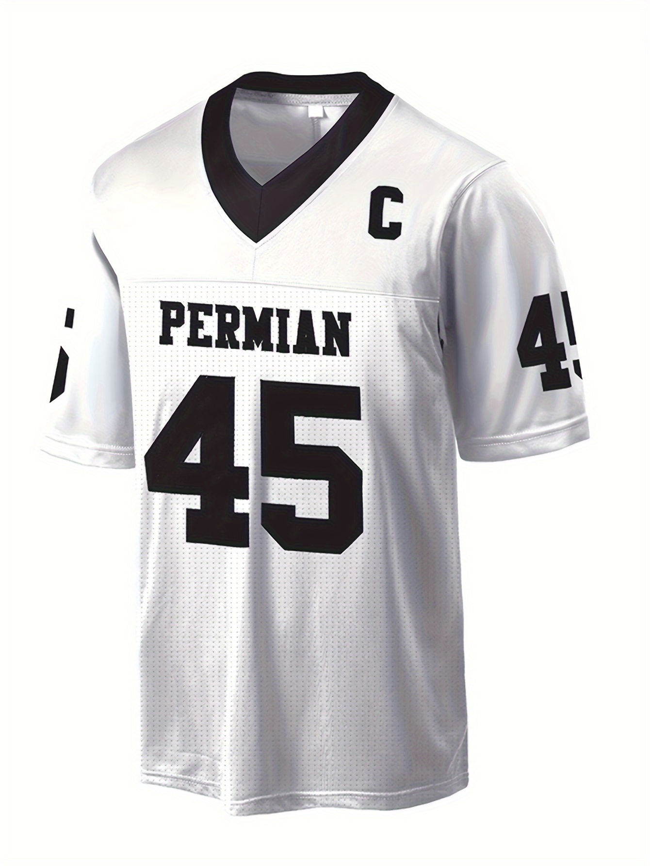 [Party Ready] Men's #45 "PERMIAN" White American Football Jersey - Loose Fit, Breathable Mesh, V-Neck with Embroidered Details, Casual & Sporty Style for Parties, Training & Casual Attire