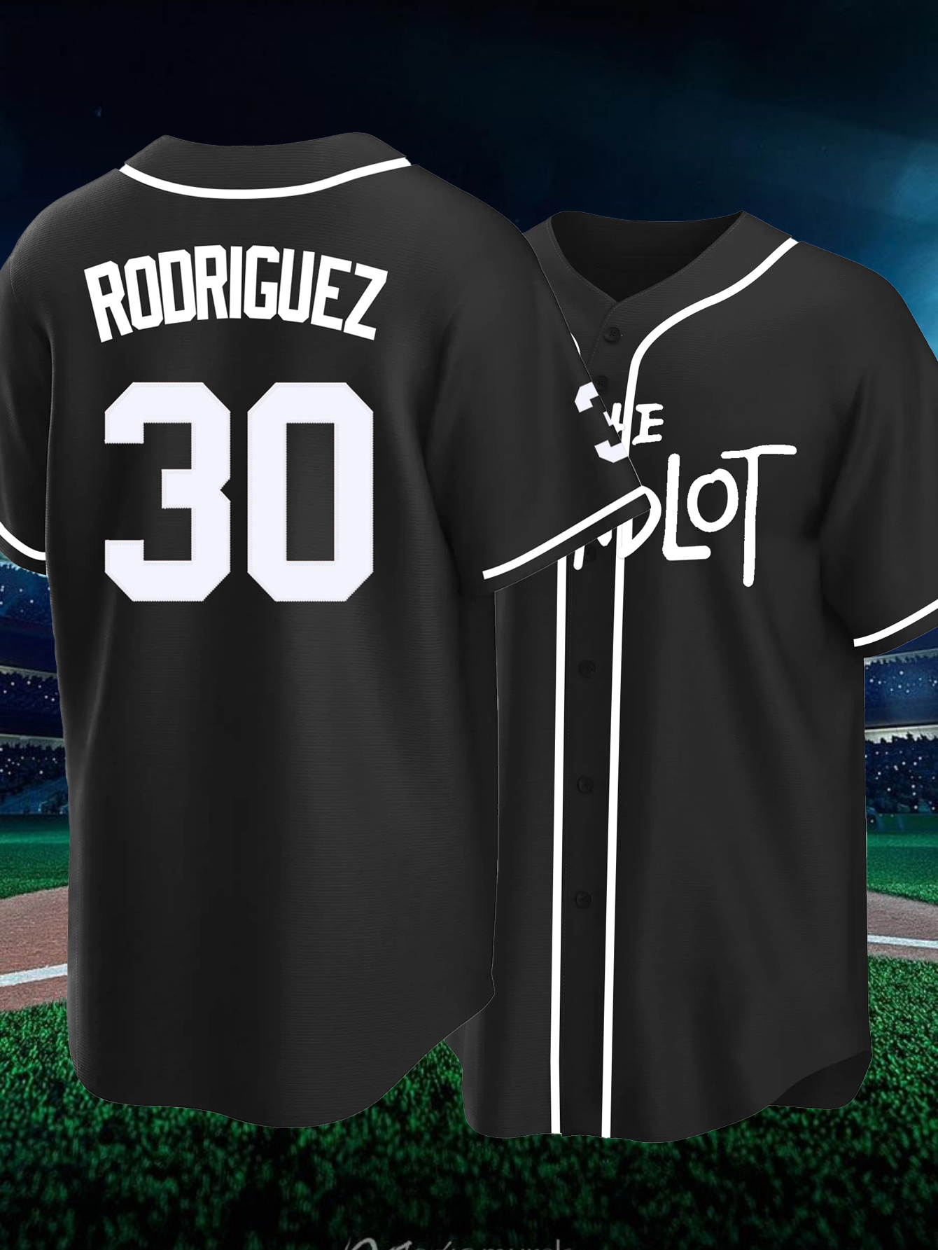 Men'S Black # 30 Baseball Shirt, Classic Letter Embroidery Design, Button style Short Sleeve Breathable Shirt, Training and Competition Category: Men'S Baseball Shirt