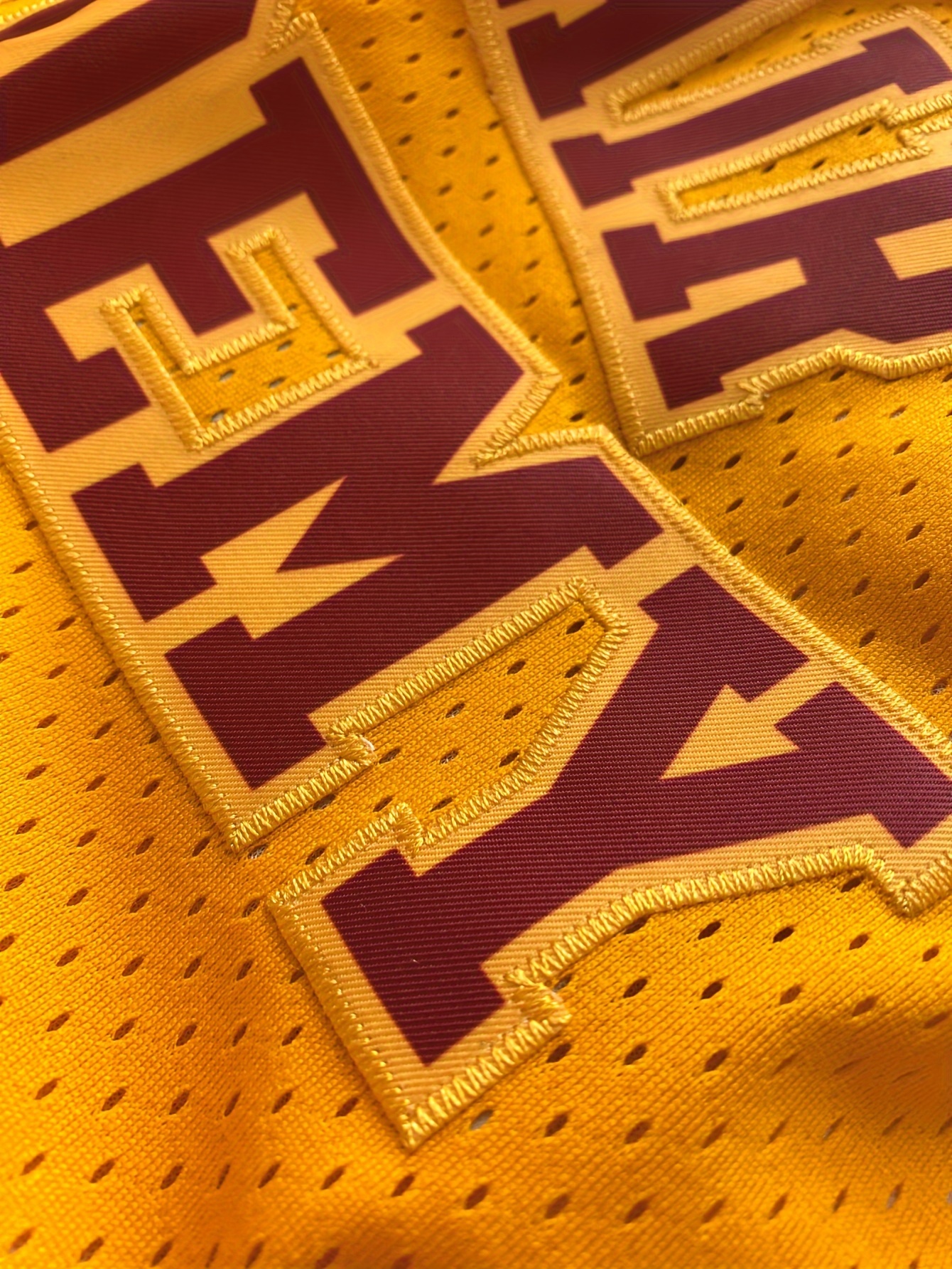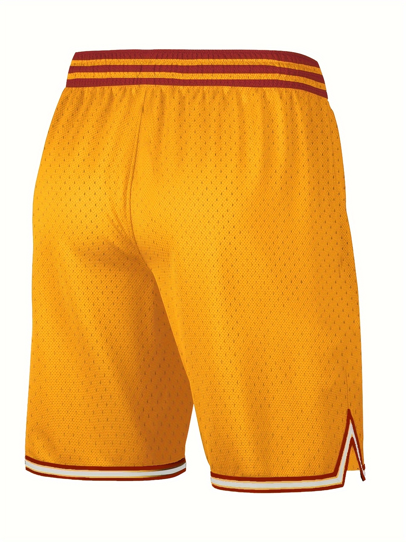 Men's Yellow # 14 Basketball Shorts with Pockets, Casual Fashion, Breathable Sports Zipper, High Quality Embroidered Shorts