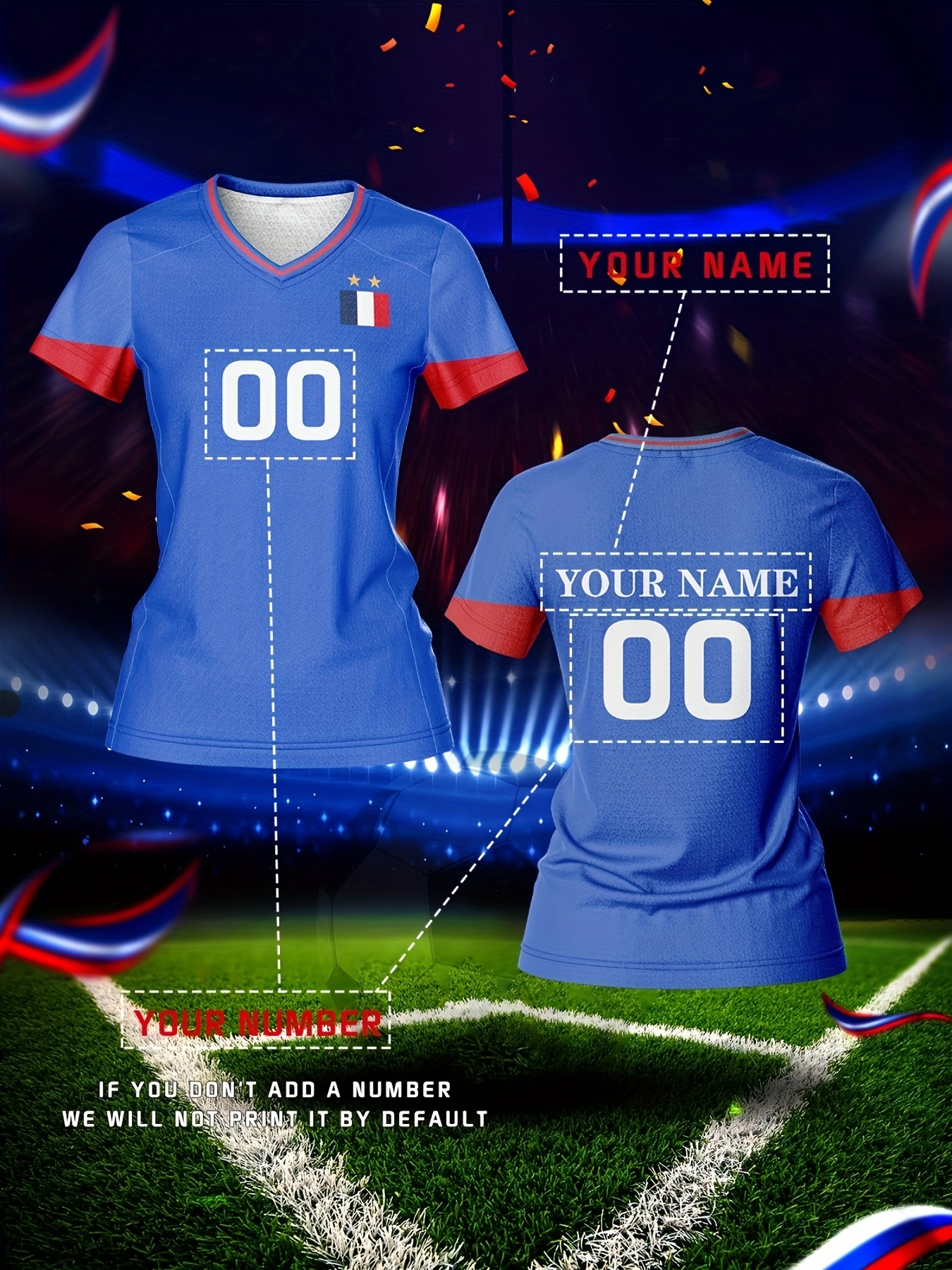 Custom Name and Number Women'S V-Neck Football Jersey Team Training Sportswear Comfortable Breathable Moisture-Wicking Casual Wear